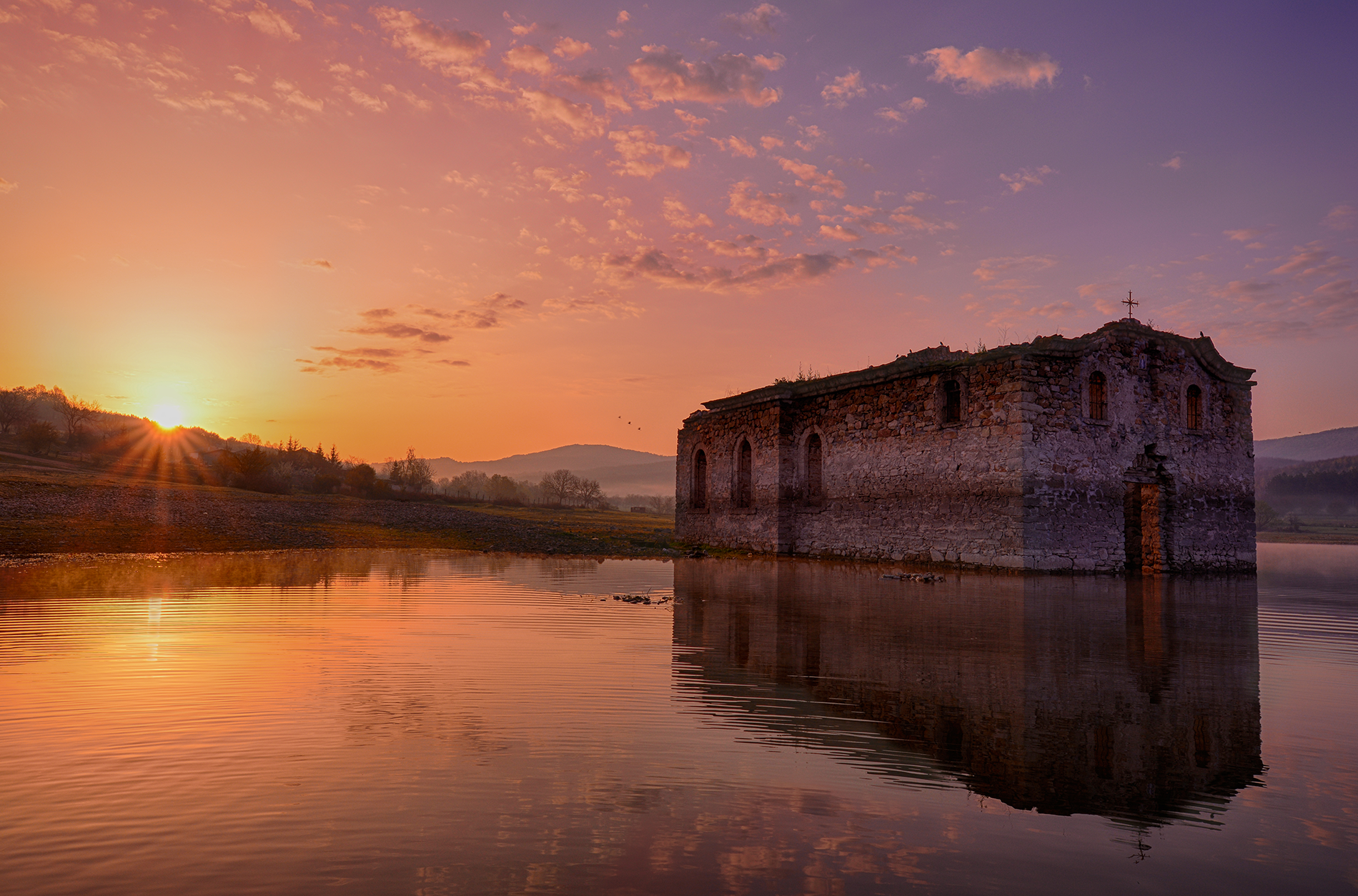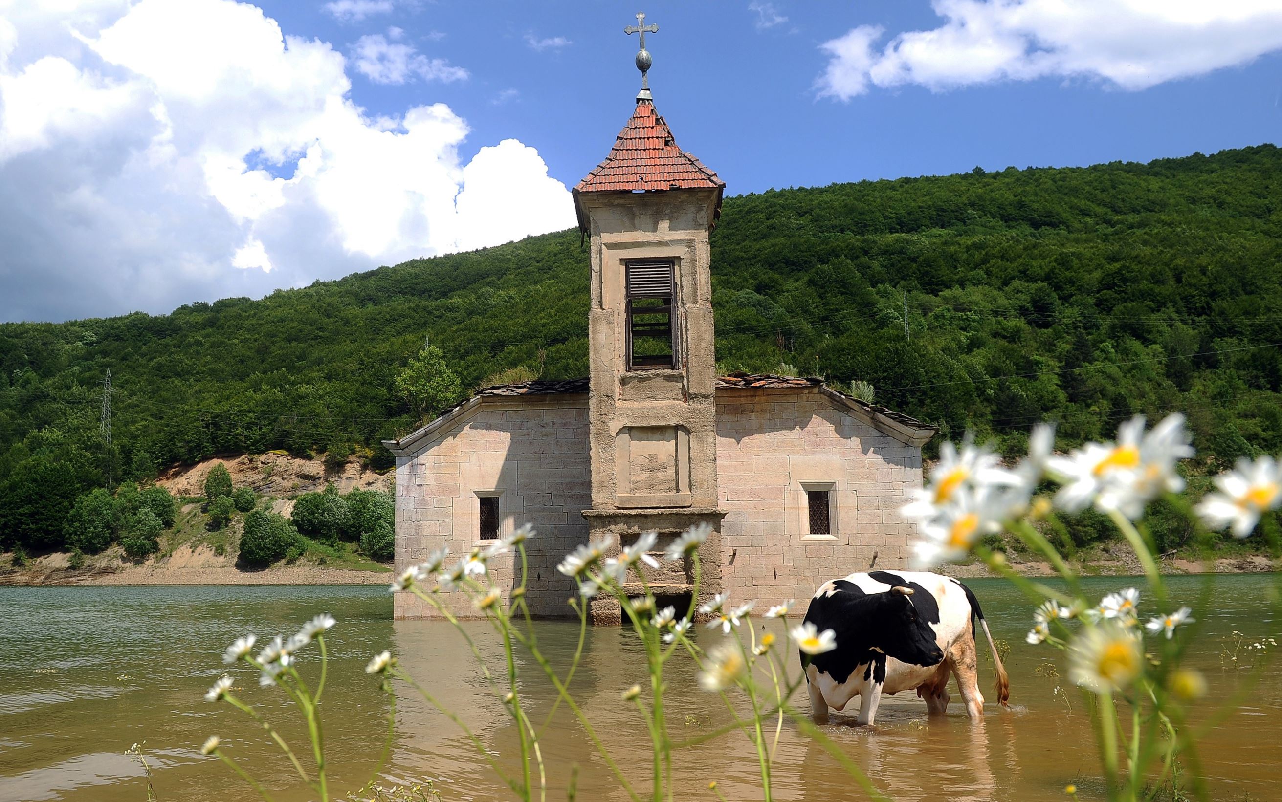 The 1895 church was swallowed by an artificial lake in the 1960s, after the government decided to build a dam in the Zapalnya region. The ruins and reservoir are now a popular tourist destination.